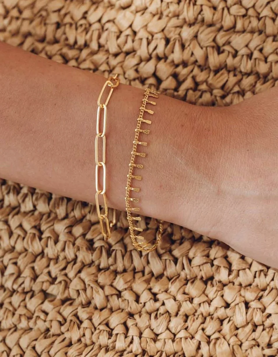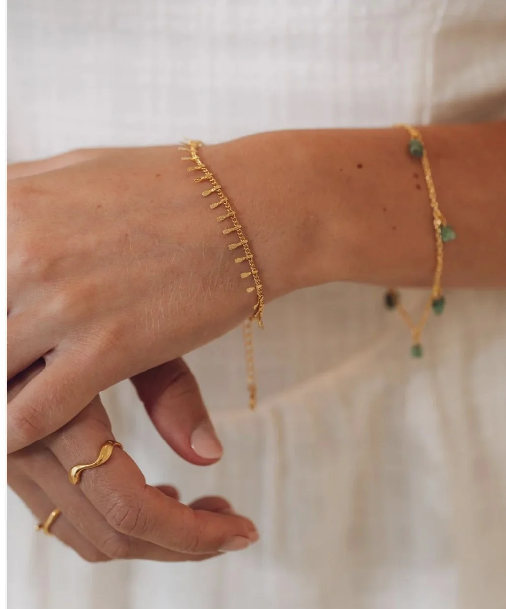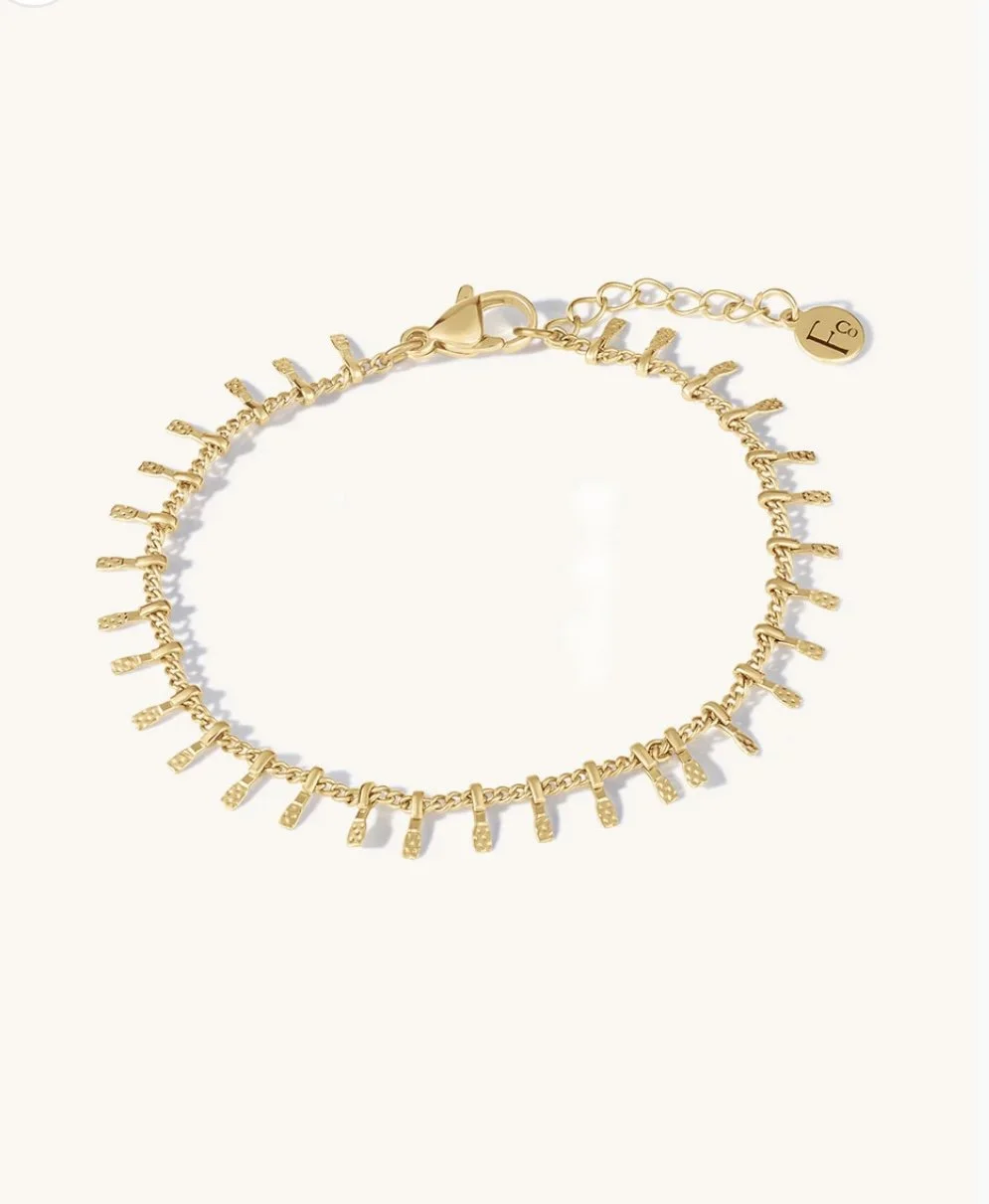 A stylish, textured bracelet, the Roxy has delicate little bars that catch the light when you move.Wear alone or as part of your bracelet stack.Matching necklace available.