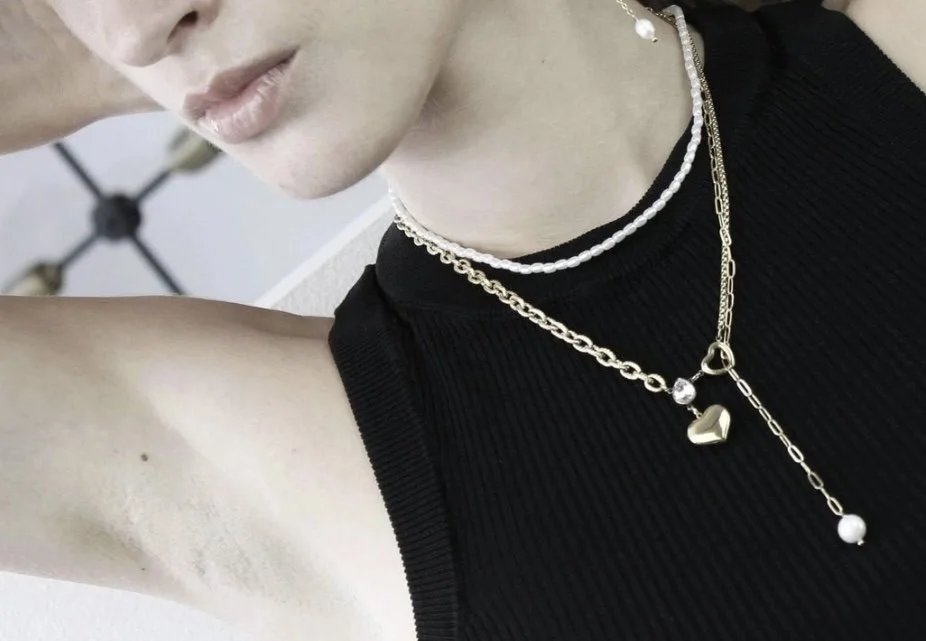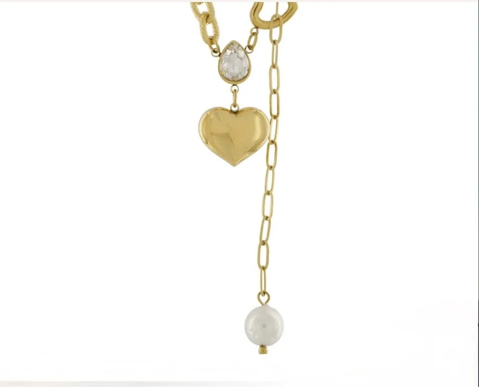 A new addition to our waterproof range.The Love clear CZ multi chain necklace will be a great addition to your jewellery collection .Crafted from gold plated 40% stainless steel with three different links chain, cubic zirconia and freshwater pearl.Suitable for wearing in the shower, sleeping…all the time !