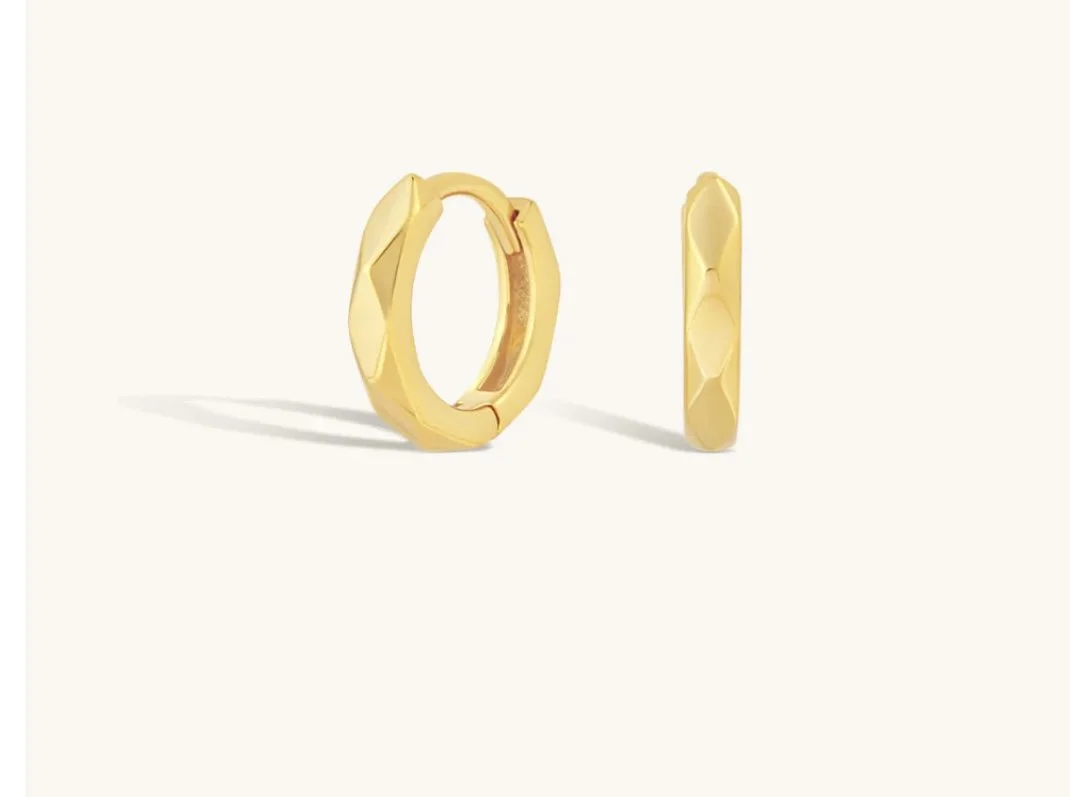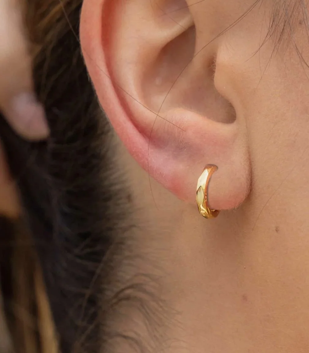 A new addition to our huggie hoop range.. Geometric lobe skimming ,stylish huggie hoops will be your new “ go to” earring.Wear on their own for a minimalist look or as part of your curated ear party.