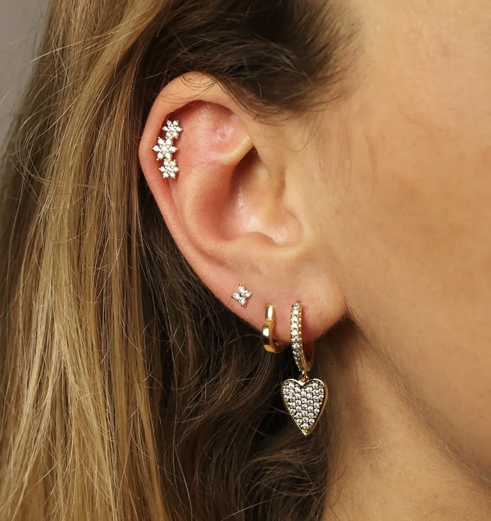 These attractive 18 carat ,gold plated on sterling silver stud earrings can be worn either on the ear lobe or the helix.Wear on their own or with other earrings in the collection.