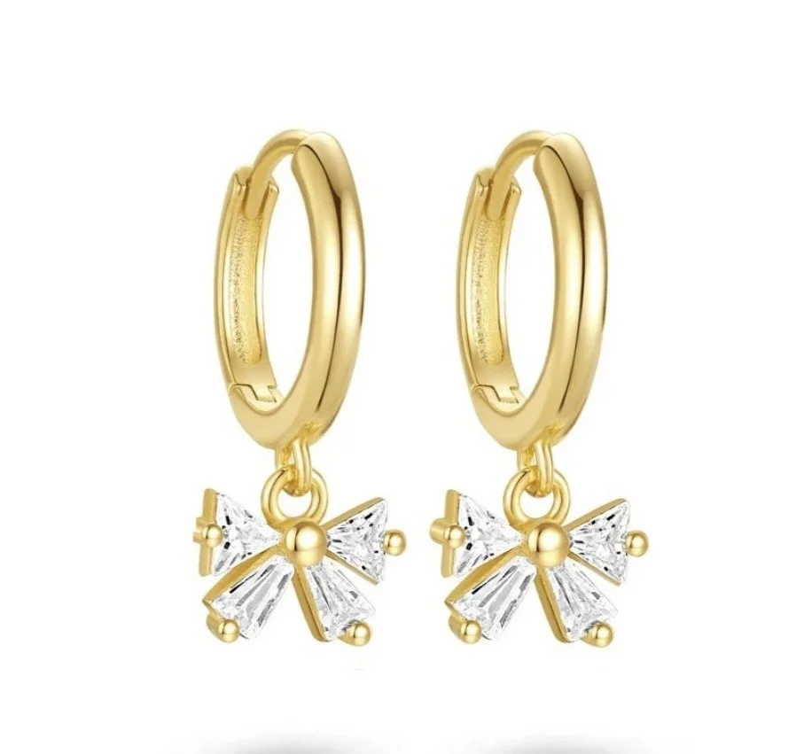Small and sparkly, these tiny bow- shaped studs feature a cubic zirconia for some subtle sparkle.Wear on their own for a minimalist look ,or as part of your ear stack.